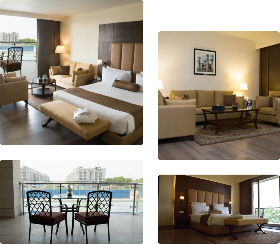 Indulge in our exquisite dining experience, where finely crafted cuisine and refreshing beverages satisfy both your senses and appetite. Retreat to our oversized Presidential Suite, offering breathtaking views of the pristine golf course, two king-sized bedrooms, a separate living room, private balcony, and a dining area for your ultimate comfort.