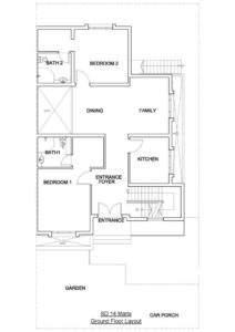 Once you enter the house, the main void at the entrance connects the first floor with ground floor visually. The house plan is beautifully designed into semi-public and private zones.