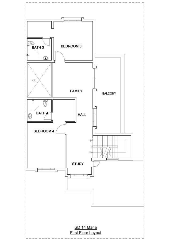 Once you enter the house, the main void at the entrance connects the first floor with ground floor visually. The house plan is beautifully designed into semi-public and private zones.