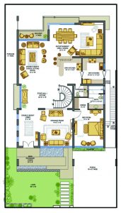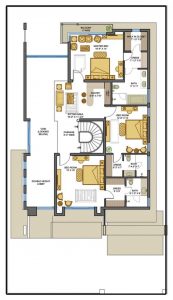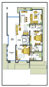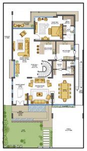 1-Kanal golf view villas are designed to offer the luxury of space and an unobstructed view of the golf course. The inviting semi-open spaces, the deck area on lower ground level and the al-fresco dining area on the roof terrace are intentionally designed to provide scenic views of the lush green golf course.